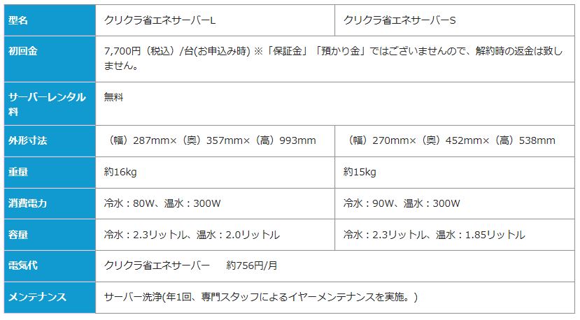 クリクラのサーバーは、L型とS型の2種類をご用意。設置場所や、お使いいただく シーンに合わせてお選びいただけます。もちろん、ご家庭のリビングやキッチンに も設置できるサイズですので、お子様のいるご家庭や、毎日の水分補給を手軽に求 められる皆さまにも気軽に利用していただけます。